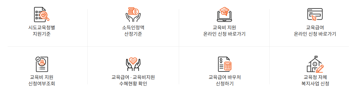 👉 방과 후 학교 자유수강권, 급식비, 학습 준비물비, 인터넷 통신비 지원 등 다양한 교육비 항목을 한 번에 신청할 수 있습니다.