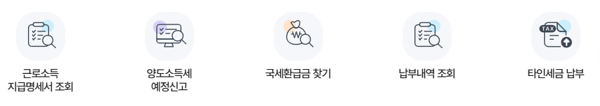 - 증명서 발급: 소득금액증명, 납세증명서 등 실시간 발급