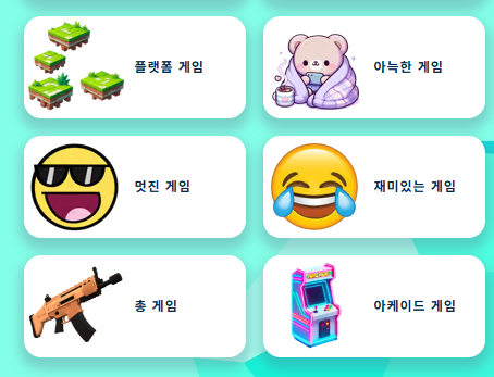 - 카테고리별로 다양한 장르의 게임을 즐길 수 있음