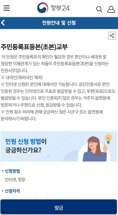 - 주민등록등본, 초본 발급